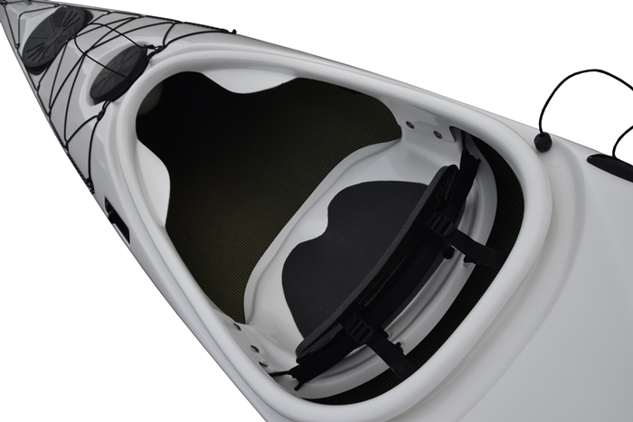 – It’s a sea kayak with good acceleration and final speed. The kayak Rev530 is equipped with two large hatches for baggage and a “Mini-box” for the smaller things. A V-shaped bottom makes the ride very fast and gives good stability.